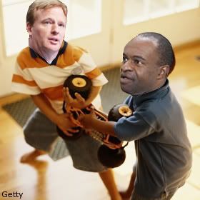 i'd do a photo of TO working out in his driveway with a foreclosure sign in front of his house. I wonder how many are facing foreclosures on their mcmansions.