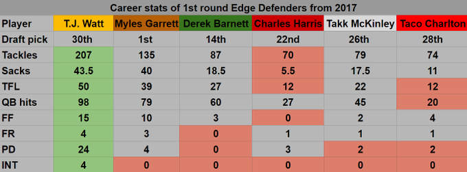 So of the eight 1st rounders, 3 are reclamation projects that have worked out pretty well. Two were given up on because of their talent (at least relative to their cap hit) and was was given up on because of his attitude. All three have been solid (and sometimes spectacular) contributors to our team.