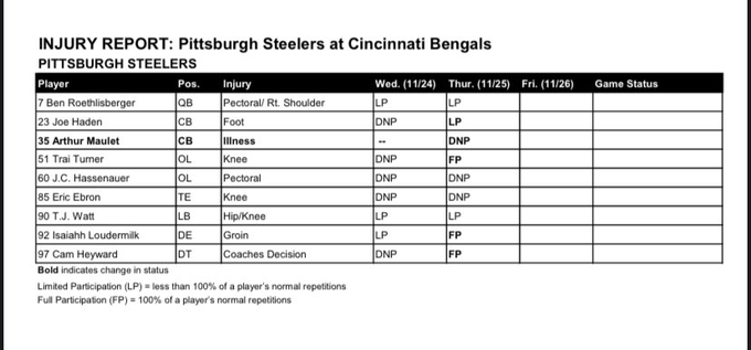 Fortunately the OL is improved (a little). But CIN defense is still playing strong. The Steelers need more than Harris to contribute on offense. Canada's playcalling has been sketchy of late. He needs to be better, or expect more shrugs from the QB.