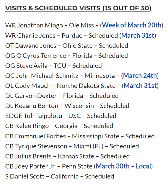 The Pittsburgh Steelers have hosted a range of players across multiple positions in advance of the 2023 NFL Draft later this month. They have officially conducted 30 of 30 available draft visits, with an additional two vists coming from local players, including Penn State’s Joey Porter Jr. and West Virginia’s