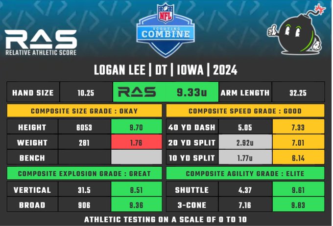 Kind of a tweener. A bit big for LB but not big enough to be a DT. Word is he might struggle getting past NFL tackles from the edge.
